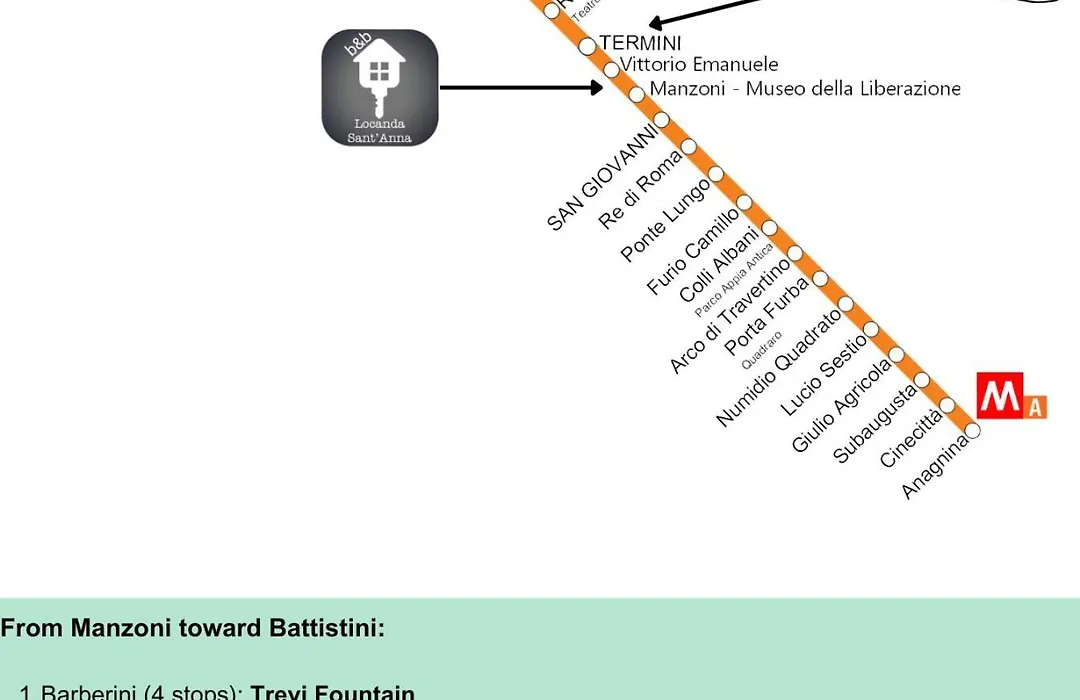 Примерно в 550 метрах от Locanda Sant'Anna есть станция метро Манцони — Музео-делла-Либерационе.